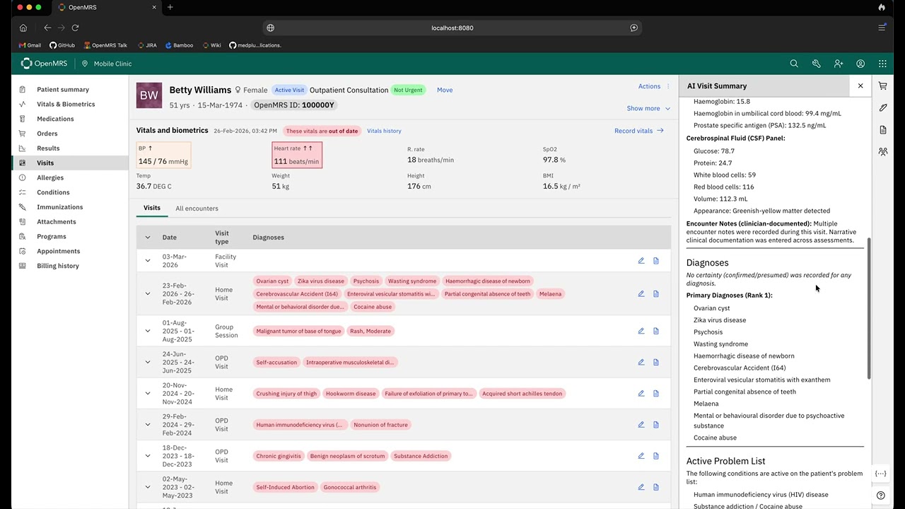 I’ve been playing around with how we can bring AI into OpenMRS, and built a prototype that generates a structured visit summary using an LLM.