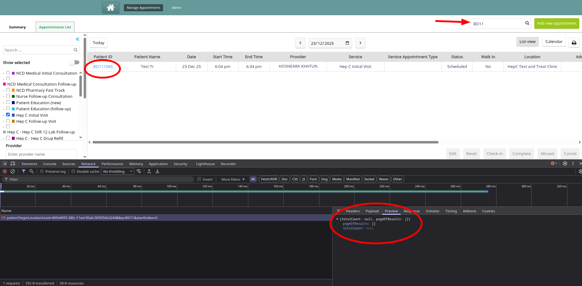in bahmni-lite, using appointment image: bahmni/appointments:1.0.0, I cannot search by ID just by name. Did it happen to anybody else ?
