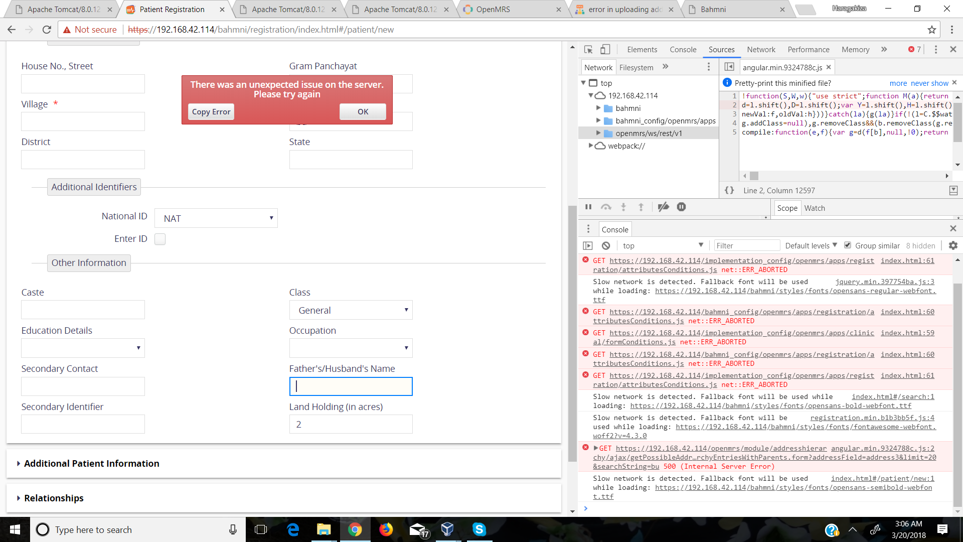 Hello, I am working on Customization of OpenMRS Module. I got an error in Address hierarchy module when i uploaded a csv file. I uploaded the csv file with an extra column. How can the error be resolved & have a chance to upload the correct csv file. Below is the error shown when i access address hirerachy