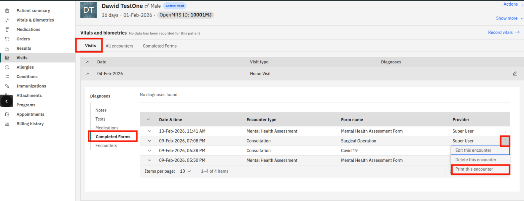 The idea would be that when a user opens or edits an encounter through a form, they can print that specific form right from there. This would give a quicker win and let clinicians print a form immediately after filling it out or when reviewing it.