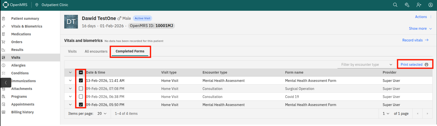 First option is that you mentioned before that we can create a very similar table to the existing “All Encounters” table but limited only to rows with forms where there will be option to bulk printing. Quick example: