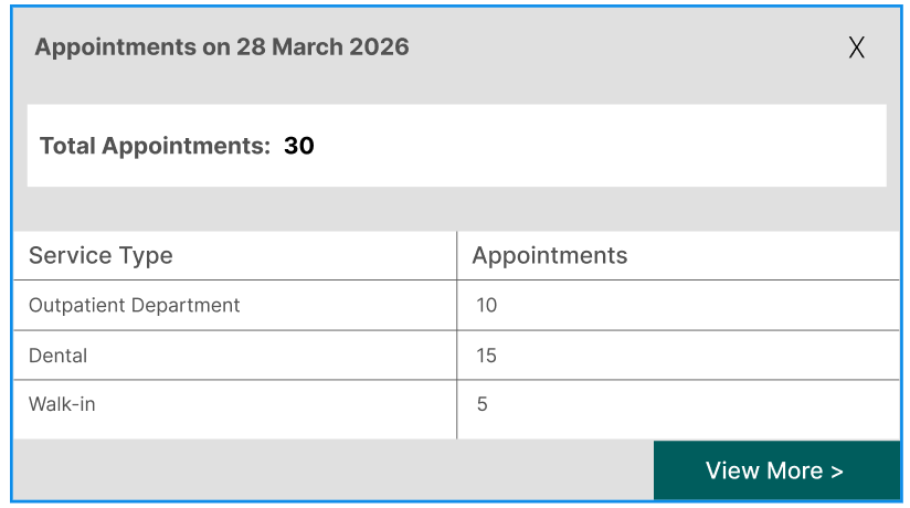 If the user wants more details, they can click “View More” , which will then navigate to the existing Daily Appointments page .