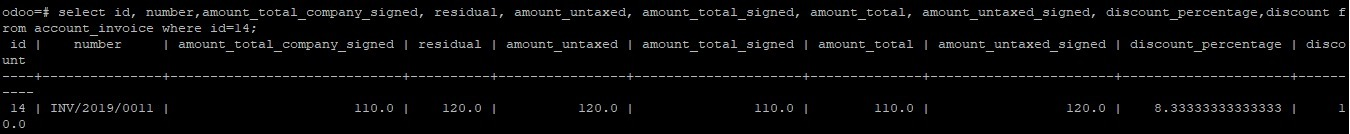 So even after paying full (post discount) amount it shows payment difference. Here is what’s getting stored in the database account_invoice