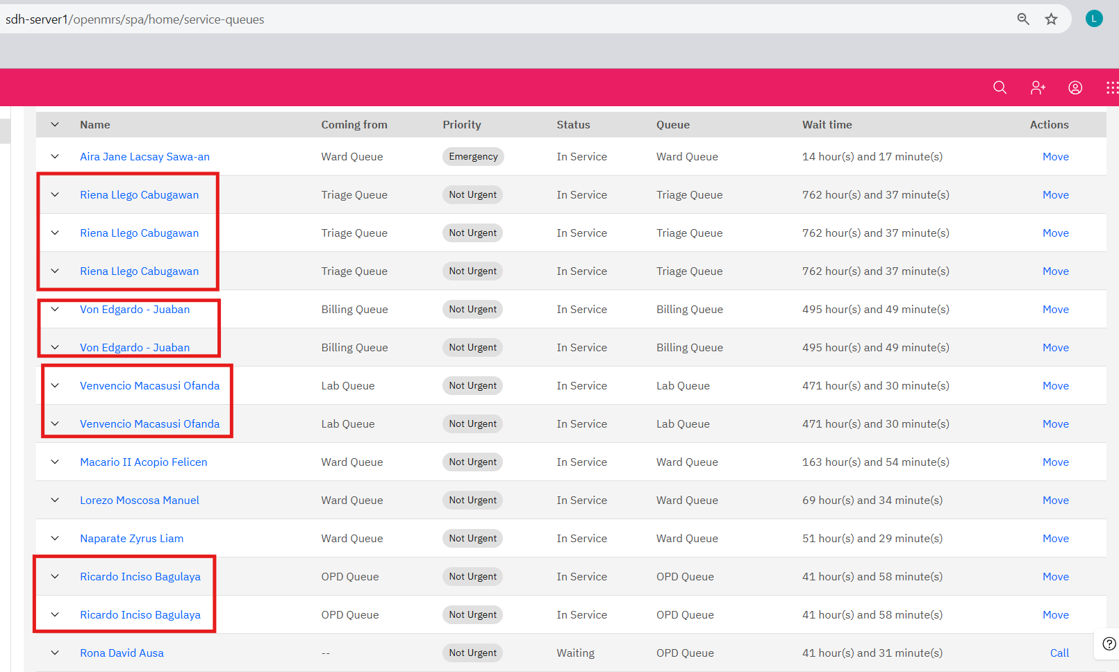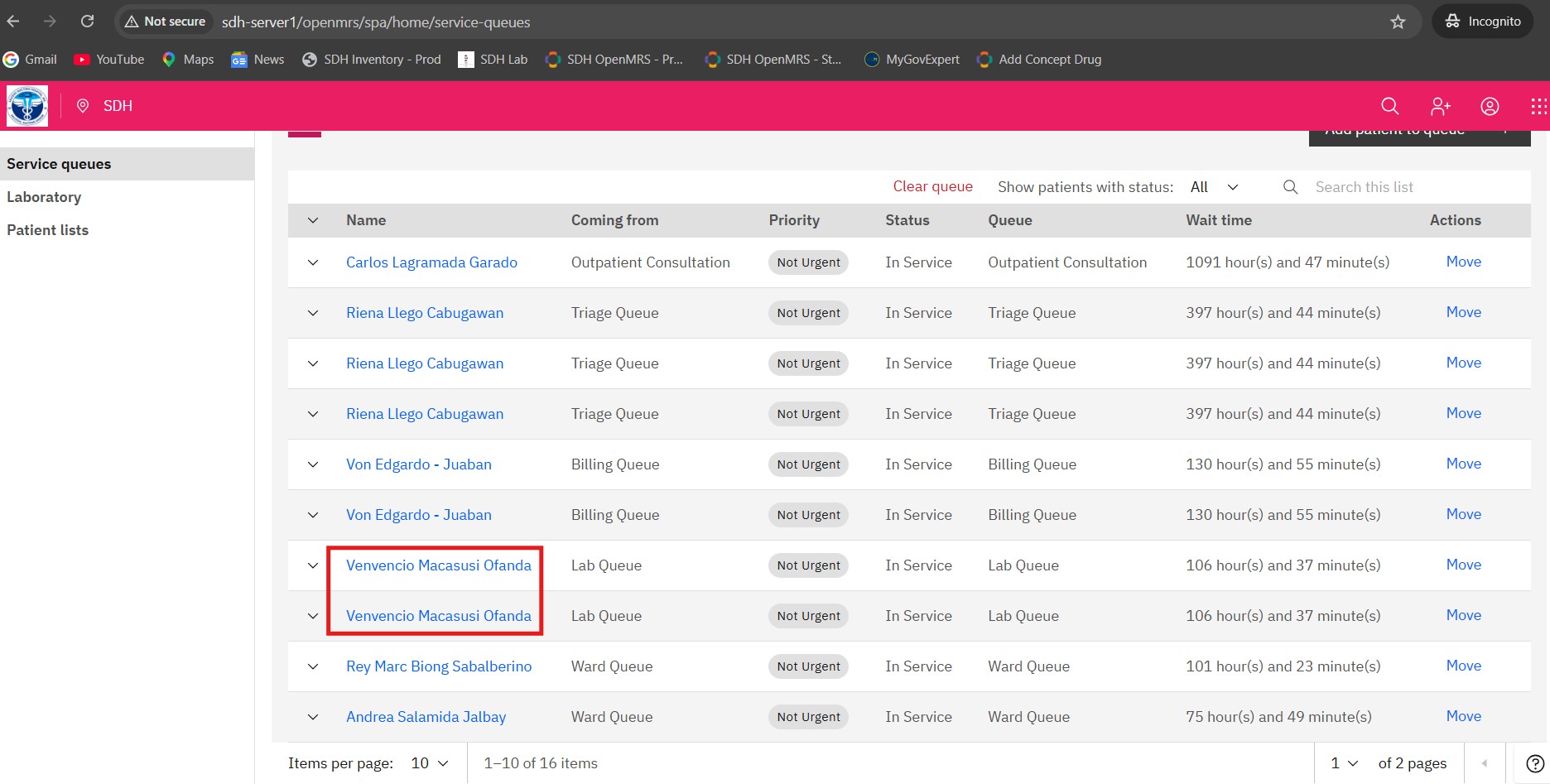 both his queue entries point to the same patient UUID