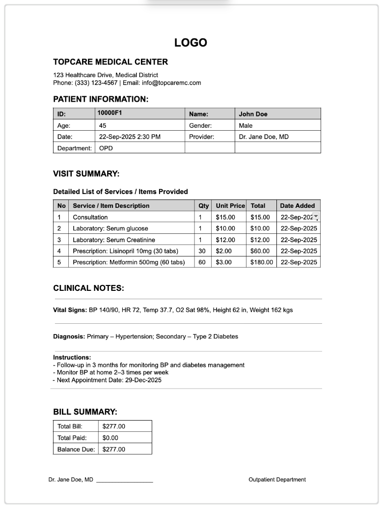 I’d like to better understand the rationale for including previous visit types (OPD/ED/IPD/ANC, etc.), given that the primary goal is to document the current visit summary.