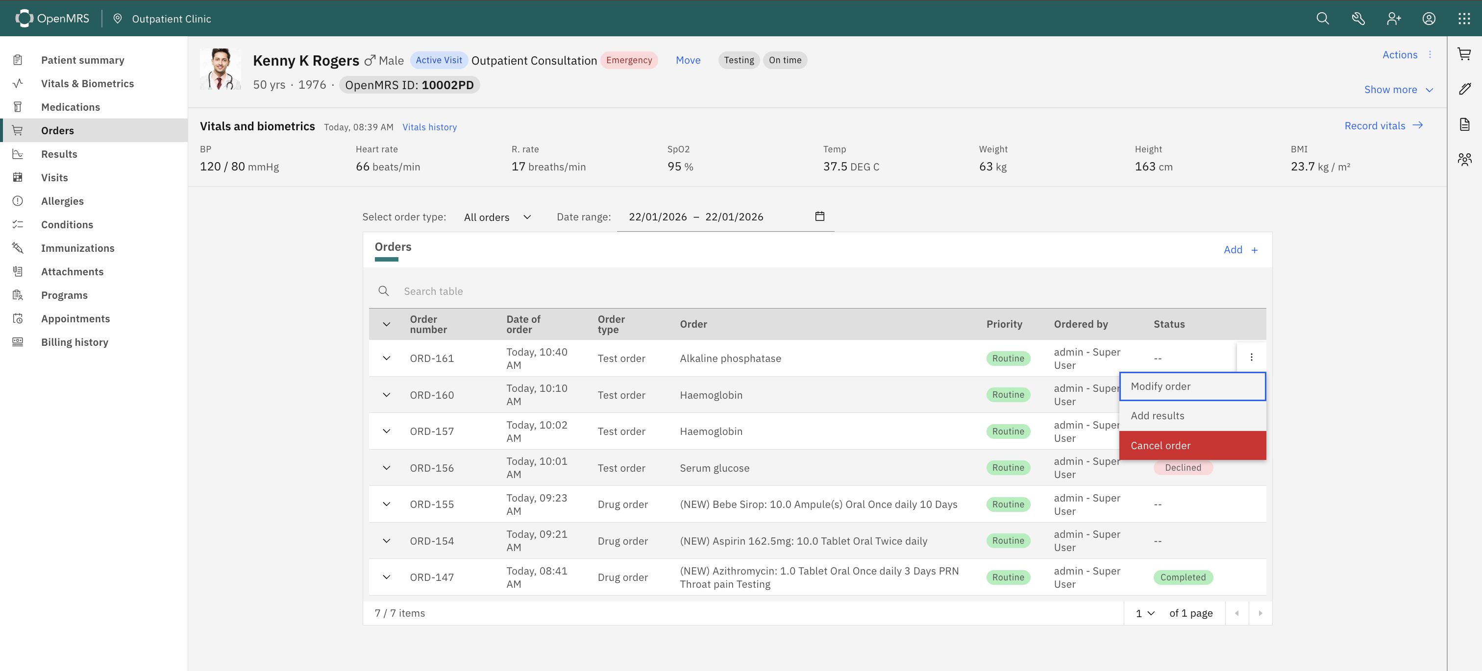 Context: One of the Lab app user stories involves completing certain desk tests without sending them to the laboratory (e.g., Hb tests for pregnant women, HIV rapid tests, etc.). Clinicians have three primary actions available: modify order, add results, and cancel order.